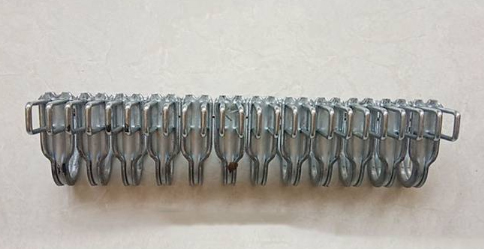 狼牙扣產品特點:板材成形,接頭低平,減少輸送帶運行的阻礙;短扣體結構,適應輕型輸送機的小滾筒要求;連體式帶扣,抗拉強度高。出廠配置:一種長度規格的狼牙扣8根。型號 適用帶厚(mm) 拉力強度(N/mm) 滾筒最小直徑(mm)55# &nb